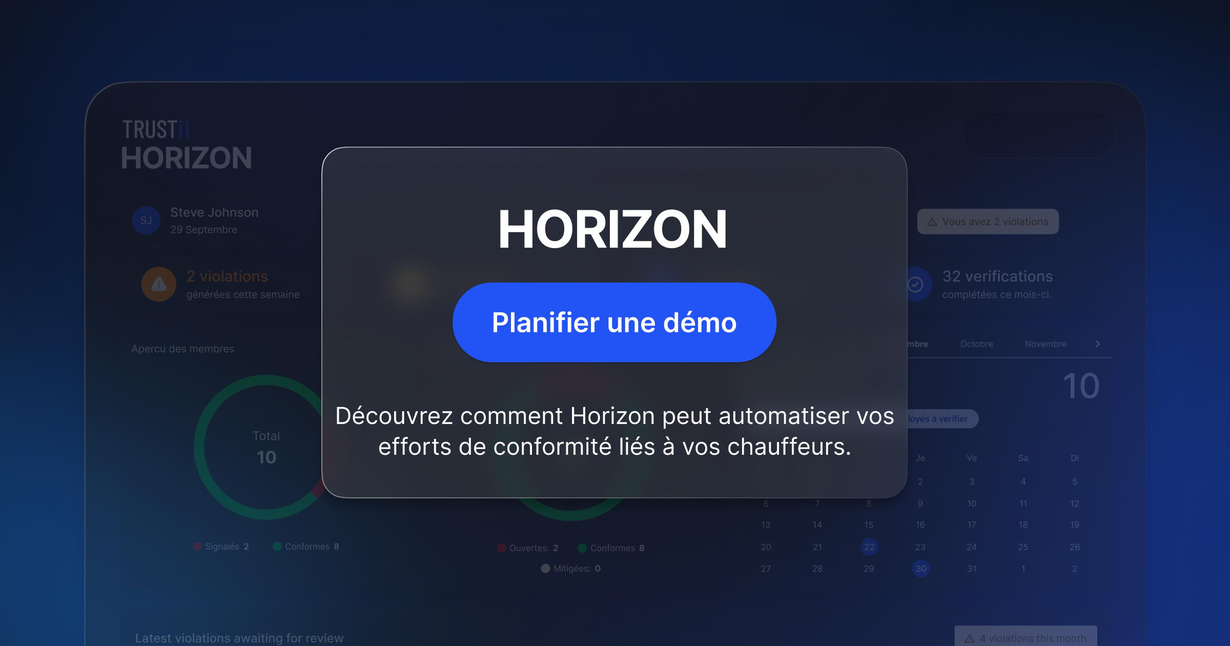 Note importante : Horizon permet également de gérer la conformité des chauffeurs internes, offrant une visibilité complète sur tous les chauffeurs associés au PEVL.